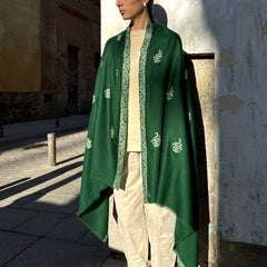 Descubre las pashmina de cashmere tejidas y bordadas a mano en telares antiguos de cachemira, al norte de la India. El bordado es tan espectacular que no es posible distinguir el derecho del revés. Una obra de arte que normalmente bordan los hombres.